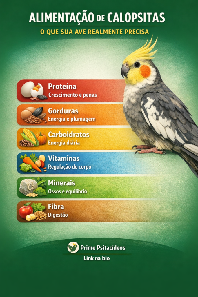 Alimentação de Calopsitas: O Que Sua Ave Realmente Precisa (Guia Completo de Nutrientes)
