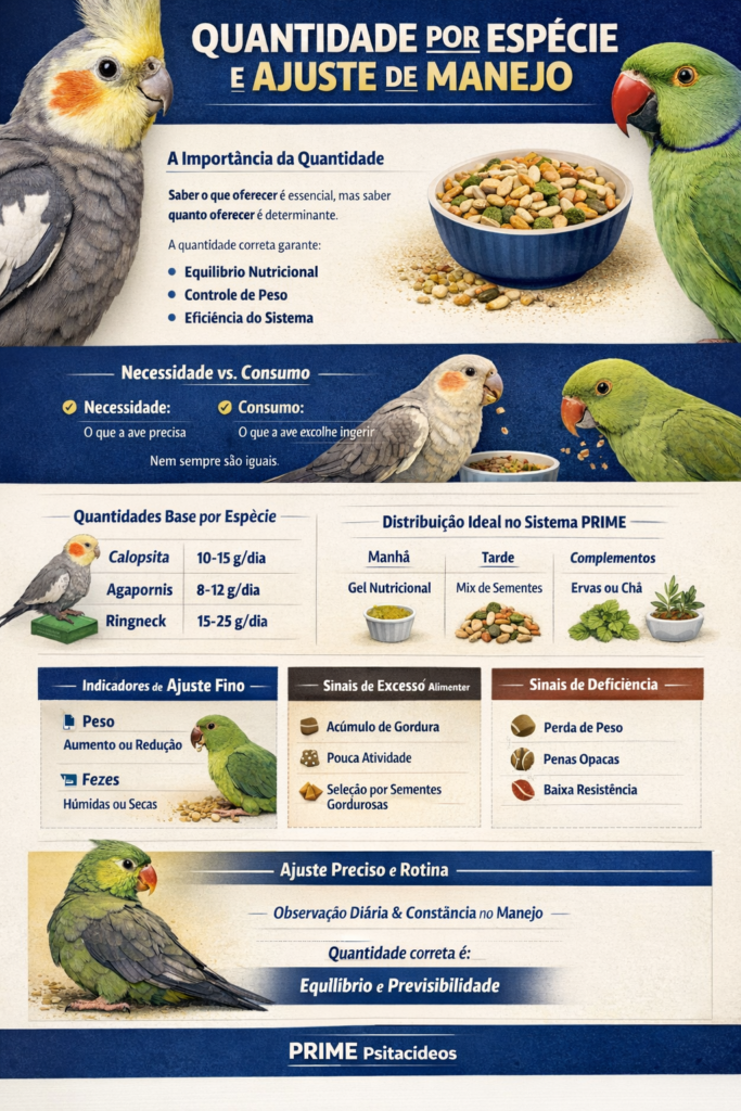 Quantidade de alimento para psitacídeos: guia técnico por espécie